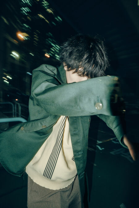 7曲入りの今作を聴いてまず驚いたのは、冒頭曲“Stay,be”の明るさだ。バンド感のあるサウンドは前作『New,man』とは明らかに異なる。その直後にはハイパーポップ以降のクラブミュージック的なインスト曲が並び、また歌モノに戻るという特殊な構成は、¥ØU$UK€ ¥UK1MAT$Uの『Boiler Room』セットから着想を得たものだという。制作面での核となったのが、ジャズシーンで活動するベーシスト・高橋佳輝の参加だ。「サウンドデザイン」という独自の肩書きでクレジットした高橋との協働は、今夏のフジロックでJames Blakeを観て確信した——サウンド全体を緻密に設計するからこそ歌が引き立つ——という野本の制作哲学を形にしたものだった。