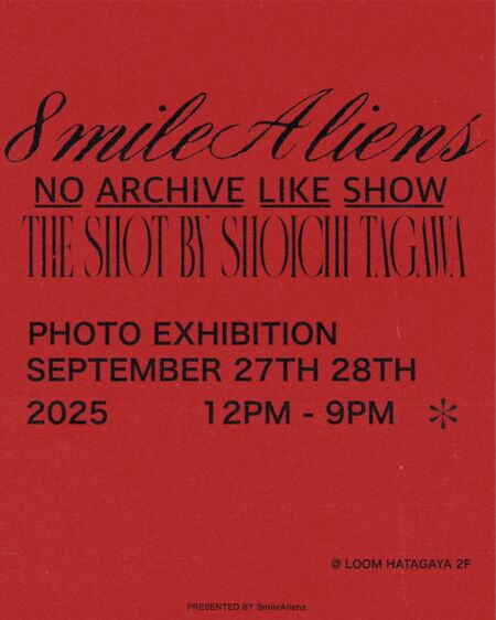 さらに、9月27日(土)〜28日(日)には東京・幡ヶ谷 loom(2F)にて、同郷のカメラマン・Shoichi Tagawaによる写真展が開催。8mileAliensのスタジオ風景やライブパフォーマンスを切り取った写真が展示されるほか、一部グッズの販売も予定されている。