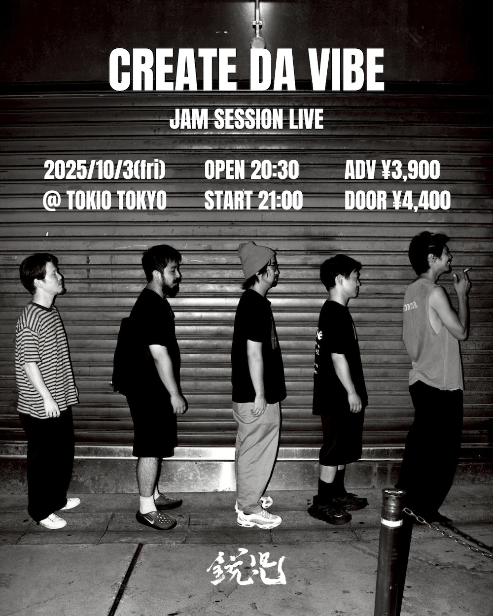 鋭児がジャムセッションライブ『CREATE DA VIBE』を10月3日(金)に東京・渋谷TOKIO TOKYOにて開催することが発表された。