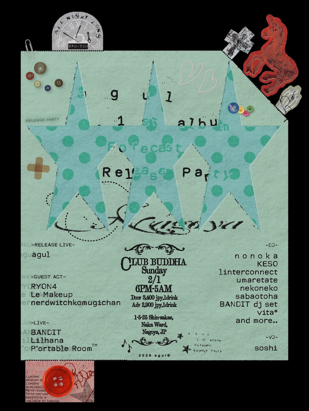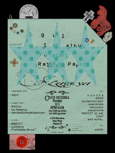 名古屋拠点のラッパー・agulが1stアルバム『Forecast』のリリースツアーファイナルを2月1日(日)に愛知・名古屋club buddhaにて開催する。
