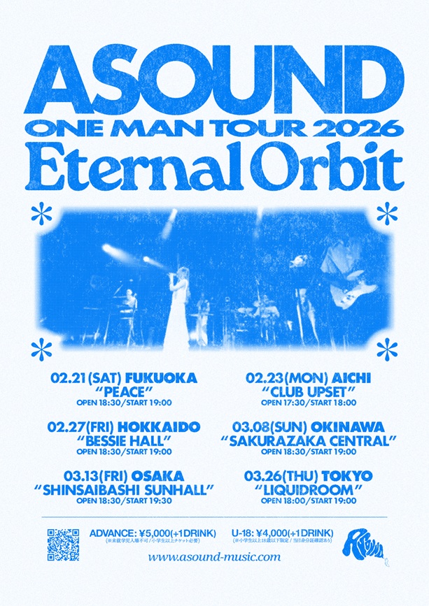 さらに、EPのリリースを記念し、全国6箇所を巡る『ASOUND ONE MAN TOUR 2026 “Eternal Orbit”』の開催も決定した。本日よりチケットの先行受付もスタートしている。