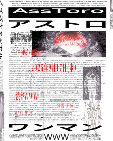 キャリア2度目のワンマンライブとなる本公演は、2020’s以降のスカムと耽美が混交するインターネット美学をヒップホップ的に拡大解釈し、脱力感のある「ウィアードゴシック」なムードを追求する日となるようだ。2020年代以降の新たなムーブメントと共に飛躍を続けるAssToroの進化と成長をお見逃しなく。