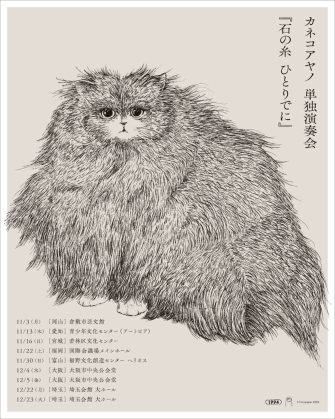 また、11月からは弾き語りソロツアー『カネコアヤノ 単独演奏会“石の糸 ひとりでに”』も開催決定。全国7箇所9公演を巡ることに。チケットが現在オフィシャル先行を受け付けている。