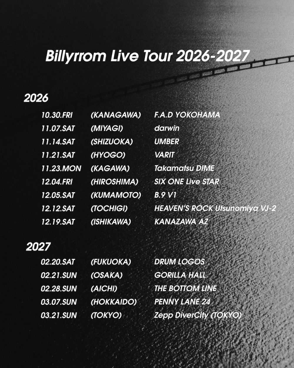 先日、「グローバルパートナーシップ」としてユニバーサルミュージックへの所属を発表したBillyrrom。今回公開された映像は、2月27日(金)に東京・Zepp DiverCityにて行われた、自身最大キャパの東京公演の様子を収めたもの。アジア各地を熱狂させたパフォーマンスの熱量と臨場感を、そのまま体感できる映像となっている。