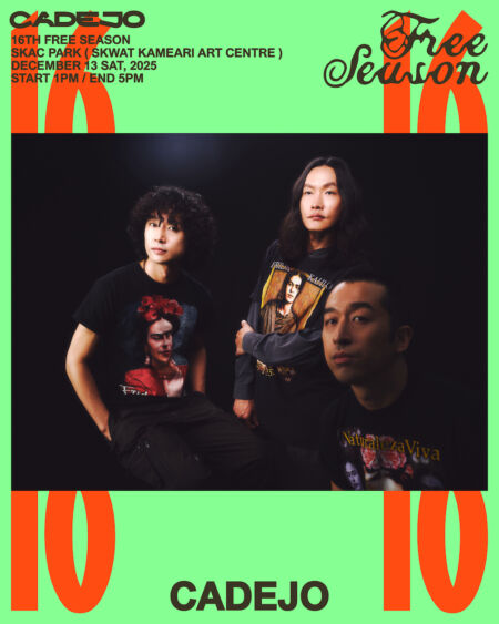 韓国の3人組ジャムバンド・CADEJO(カデホ)が、東京・亀有のアートセンター「SKAC(SKWAT KAMEARI ART CENTRE)」にてフリーイベント『FREE SEASON』を12月13日(土)に開催する。