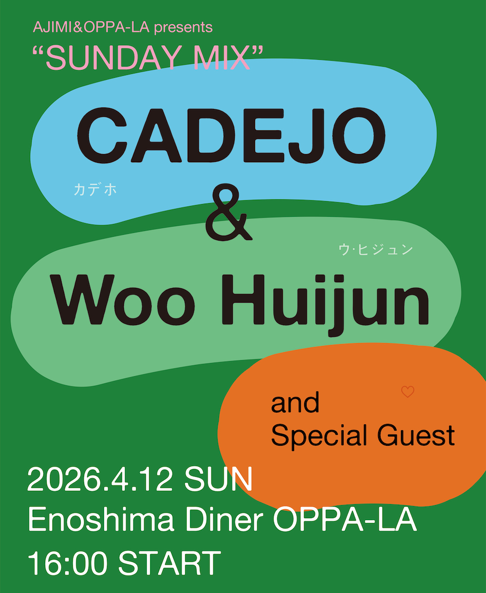 韓国インディシーン屈指のライブバンドとしてその地位を確立しているCADEJOは、2025年にダブエンジニアの内田直之とともにループミュージックを追求したアルバム『ENDLESS』を発表。12月には東京・亀有の「SKAC(SKWAT KAMEARI ART CENTER)」にてフリーライブを開催し、先日はOriginal Love主催フェスへの出演でも大きな話題を呼んだ。