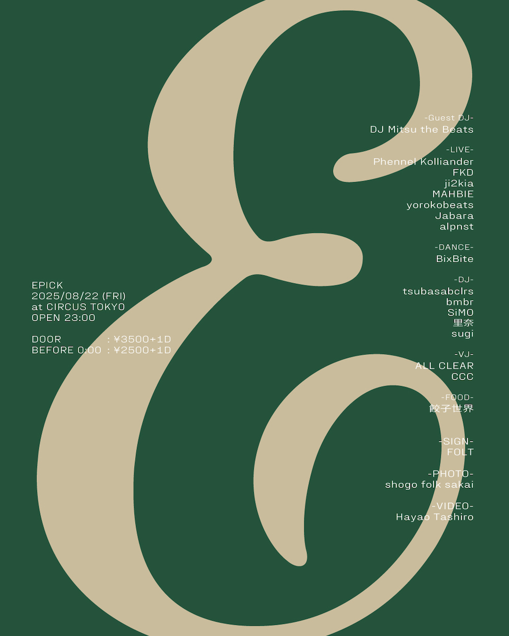 また、8月22日(金)深夜には東京・渋谷CIRCUS Tokyoにて、FKD主催パーティ『EPICK』が開催。本作のリリースを記念し、DJ Mitsu the Beatsを仙台より招聘。また京都より〈Tabale Beats〉主宰のPhennel Kollianderをはじめ、MAHBIE、yorokobeats、ji2kiaらがビートライブセットにて参加する予定だ。