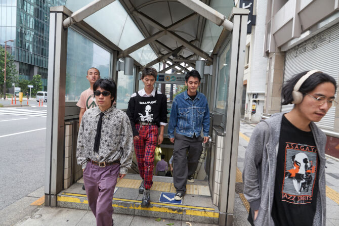 2024年東京で結成された、横山タケマロ(ボーカル/ベース)、シュンサイ(カウベル)、太朗(ギター)、大儀見海(ドラム)、JOETARO(絵)の5人からなるDOGO。『FUJI ROCK FESTIVAL’25』にて「ROOKIE A GO-GO」への出演を経てリリースされた『THE GRAFFITI MARKET』には、大儀見元(コンガ)、松丸契(Sax.)、後藤篤(トロンボーン)がゲストミュージシャンとして参加。そのフリーキーなサウンドでも注目を集めた。
