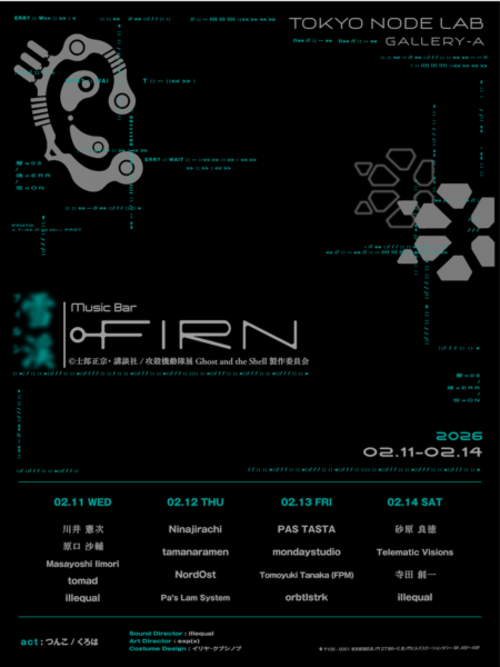東京・虎ノ門ヒルズ ステーションタワー45Fの情報発信拠点「TOKYO NODE(東京ノード)」内、TOKYO NODE GALLERYにて開催中の『攻殻機動隊展 Ghost and the Shell』の会期中に、特別イベント『MUSIC BAR “FIRN”』が行われる。