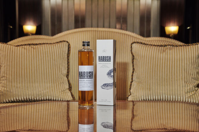 〈BlackEyePatch〉がデザインを手がけた限定ボトルを中心に、〈HABUSH〉のブランドディレクターを務めるAwichをモデルに、カメラマン・KEITA SUZUKIが撮り下ろした作品を起用したフーディー、洗練されたデザインの施されたショットグラスや〈BlackEyePatch〉による限定デザインボトルストラップがラインナップ。