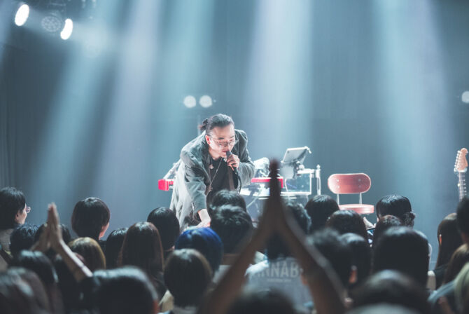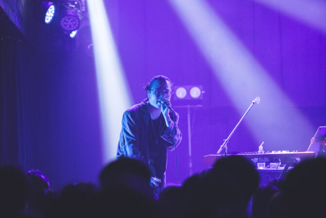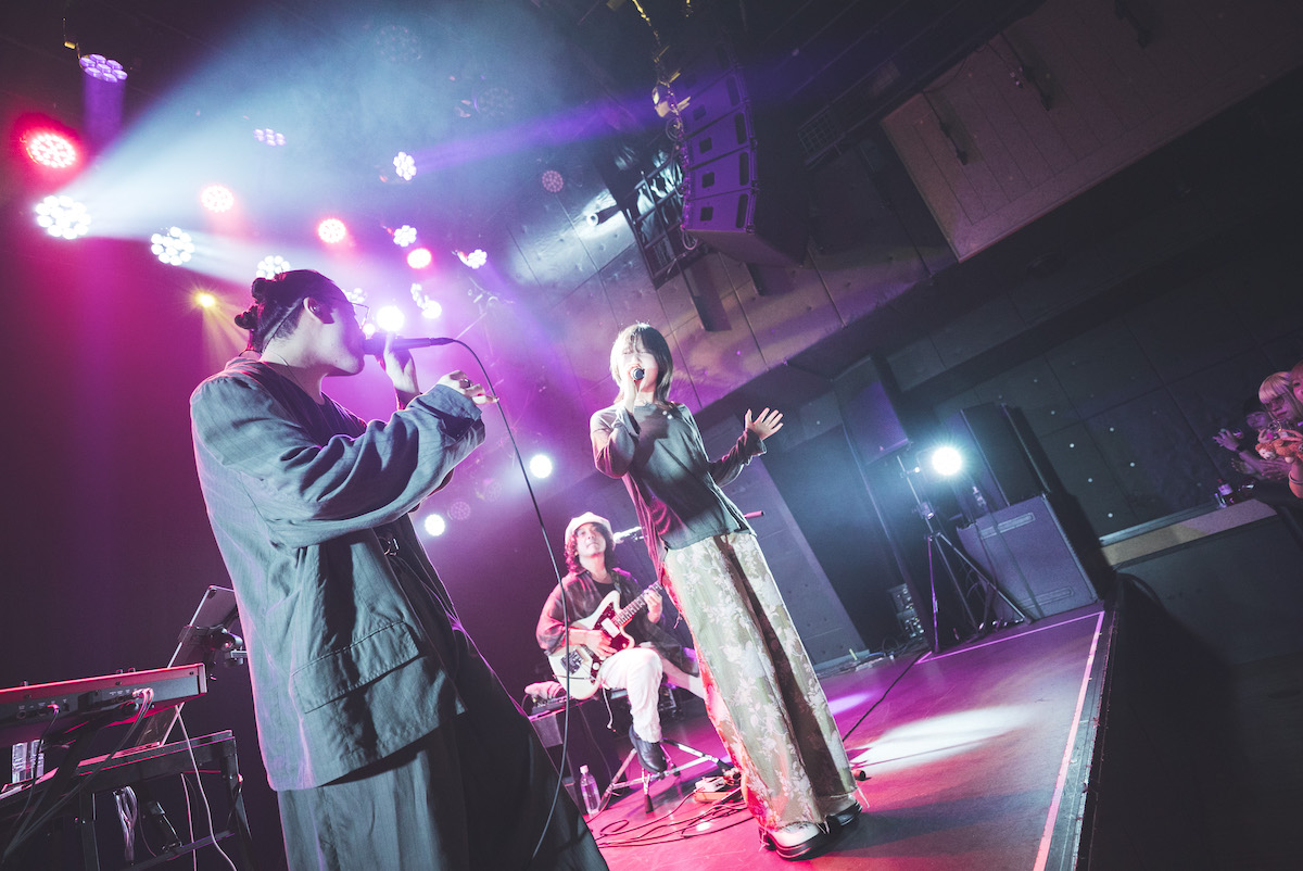 今回の公演のために書き下ろされたイントロが静かに鳴り響き、「親しみのあるスムースな空間」を体現するように、どこか懐かしく馴染みやすいムードで会場を包み込む。続いて1st EP収録の“燃える夜”、続けて昨年5月リリースのアップテンポチューン“OVERTIME”を披露。「OVERTIME, OVERTIME」──1年ぶりとなるワンマン東京公演を待ち望んでいたファンの大きな歓声が会場に鳴り響く。「今日の夜は長いですよ、よろしくお願いします!」