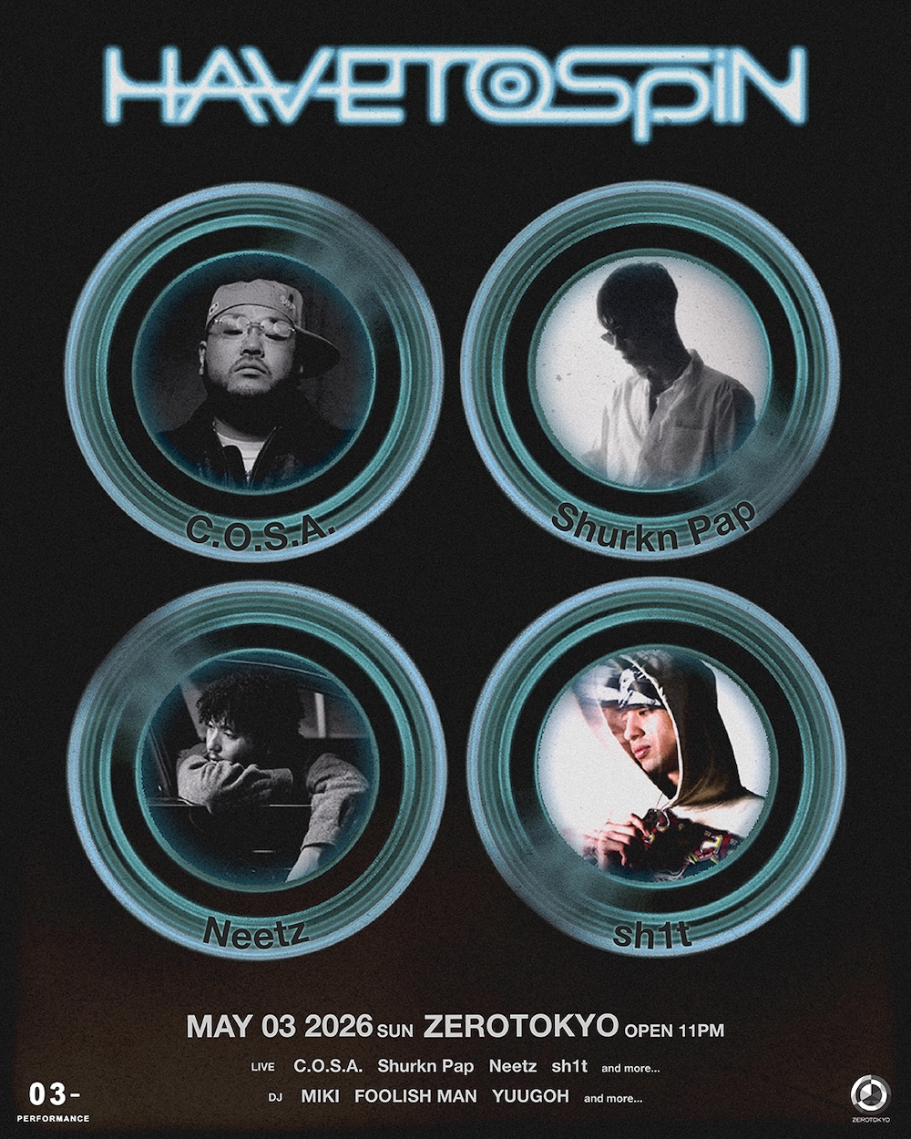 『Have to Spin 2026』がGWに開催 第1弾発表でC.O.S.A.、Shurkn Pap、Neetz、sh1tら