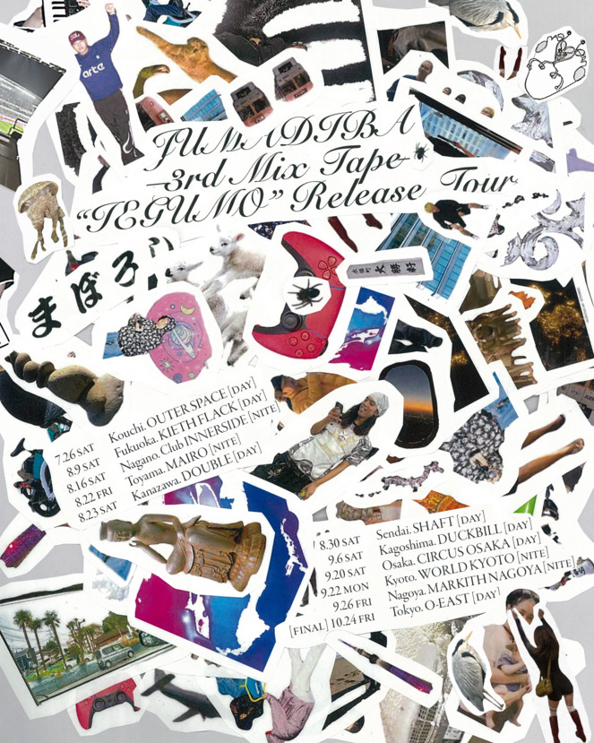 また、10月24日(金)に東京・Spotify O-EASTにて行われるツアーファイナルは、JUMADIBAにとって3年ぶりのワンマンライブとなる。チケットは本日19:00より先行抽選がスタート。ワンマンビジュアルやツアービジュアルは、ポスターやビジュアルなどのグラフィックデザインをはじめCDやブックデザインなども手がけている八木幣二郎(Heijiro Yagi)が手がけた。