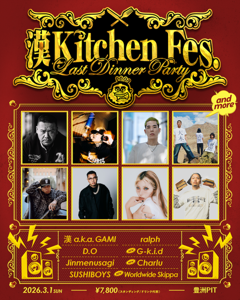 3月1日(日)に東京・豊洲PITにて開催されるイベント『漢 Kitchen Fes. ~Last Dinner Party~』の第2弾ラインナップが発表された。