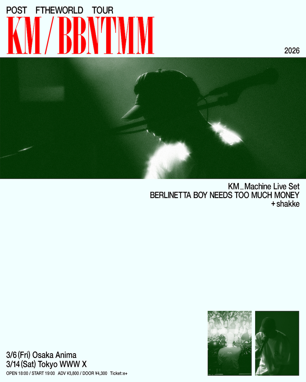 アルバムには先行シングル“Language”、“Blue Hour feat. SPARTA”を含む全9曲を収録。また、合わせて大阪・東京を巡るワンマンツアー『Post-Ftheworld Tour』の開催も発表された。3月6日(金)に大阪 Live House Anima、3月14日(土)に東京・渋谷 WWW Xにて、KMの新たな試みとして初公開となるMachine Liveセットを披露するという。チケットはただいまより一般発売がスタートしている。