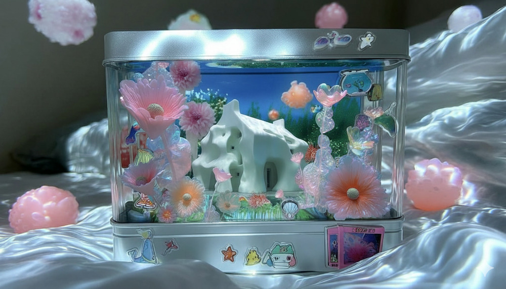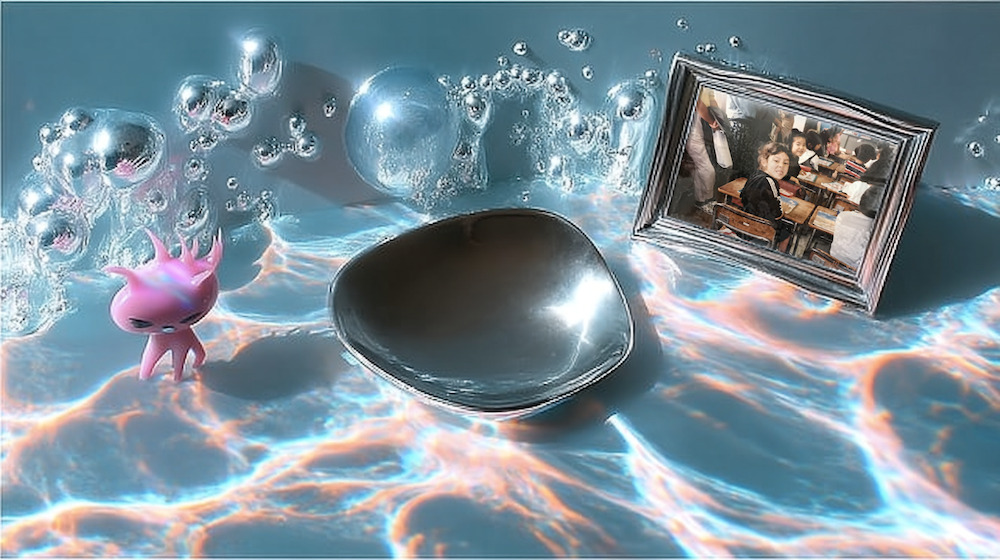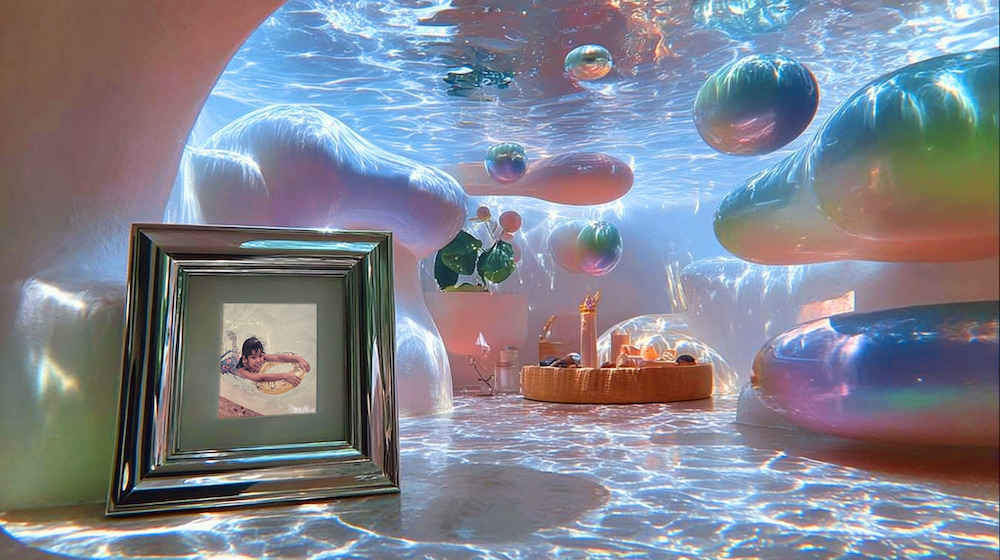 リリース日の20:00にはMVも公開予定。これまでにも幾度となくMaika Loubteとコラボを重ねてきた、気鋭のビデオアーティスト、Saou Tanakaが担当。2025年現在のAI・3Dアニメーション技術を駆使したという同MVには、何枚かのMaika Loubté自身の幼少期の写真が登場。カラフルな金魚鉢──すなわち「家」のメタファーとして描かれた空間の中を、視点は絶えず移動し、内面世界を旅するように展開していく。