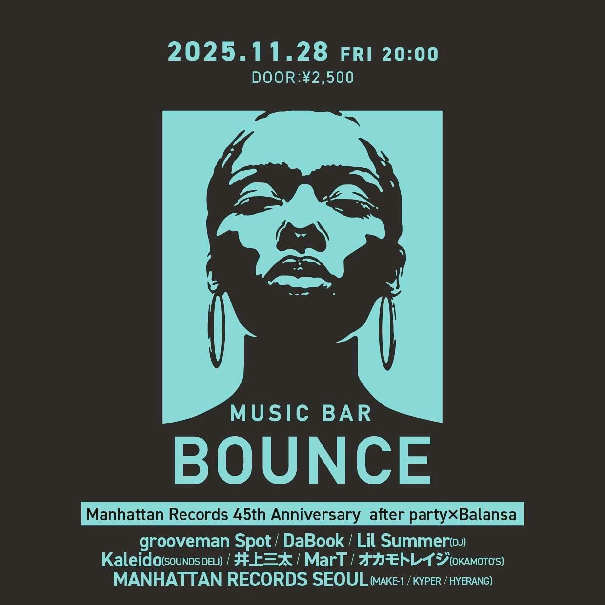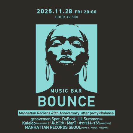 20:00からは夜は渋谷・道玄坂の人気ミュージックバー・MUSIC BAR BOUNCEにてアフターパーティも開催。Manhattan Records、BOUNCE、そして韓国・釜山の人気ブランド・Balansaによる共同開催で、grooveman Spot、Lil Summer (DJ)、DaBook、井上三太、オカモトレイジ (OKAMOTO’S)らが出演。