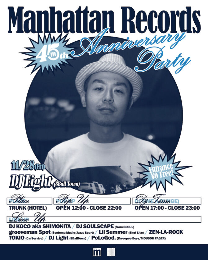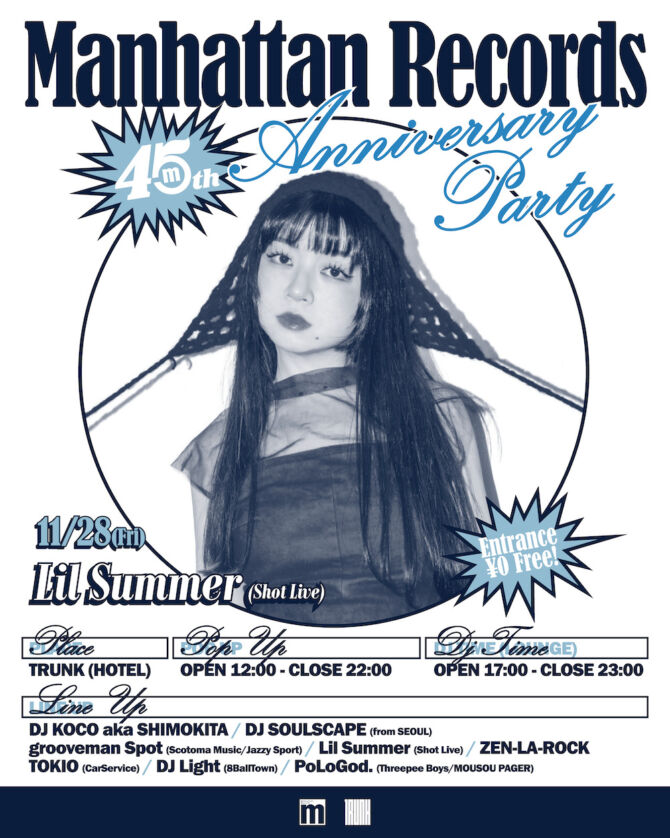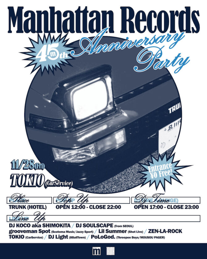 創業45周年を迎える渋谷の老舗レコードショップ「Manhattan Records®(マンハッタンレコード)」が、11月28日(金)にアニバーサリーイベントを開催する。