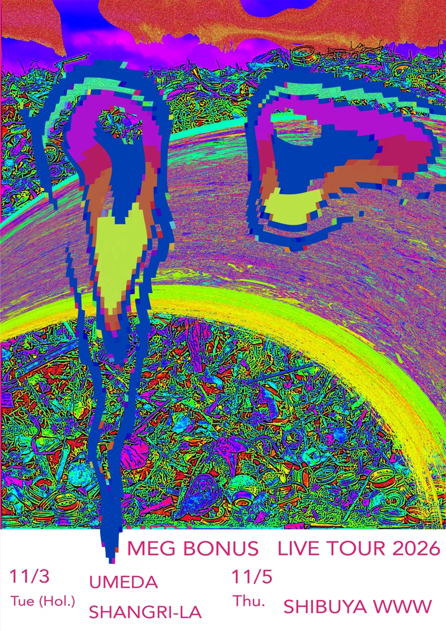 本発表は、本日4月29日(水)に東京・大手町三井ホールにて開催した自身初のホール公演『Meg Bonus“TO THE YOU (ME) I MET BEFORE”』で行われた。初の大阪ワンマンとなる11月3日(祝。火)梅田Shangri-La公演と、11月5日(木)東京・渋谷WWW公演からなる東阪ツアーとなる。