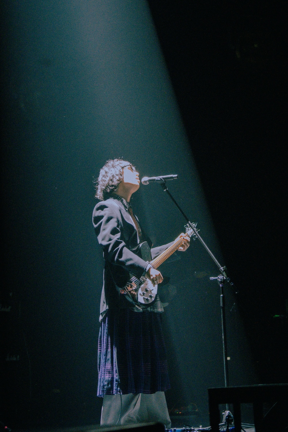 「元気に思われることが多いけど、全然そんなことない。最近は今まで見せてこれなかったネガティブとか、憂鬱な気持ちを曲に書くようになった」。そしてそれによって、そうした心情に共感するような感想が届くようになったという。だから暗い気持ちにも価値はあるんだと。それはまさにアルバム『天使様†』に反映された感覚であり、同時にこのツアー全体のモードだろう。彼のステージがこれまでよりも少しだけ情感豊かになったと感じるのは、きっと偶然ではないのだ。そして「そういう曲を聴いても、ネガティブなところからポジティブにはならないかもしれないけど、メガティブにはなれるかもしれない」という謎の締めでMCを終え“トラウマ”へ。負の感情を撒き散らすような歌詞だが、穏やかなアコースティックギターで歌うポップナンバーというのが彼らしい。