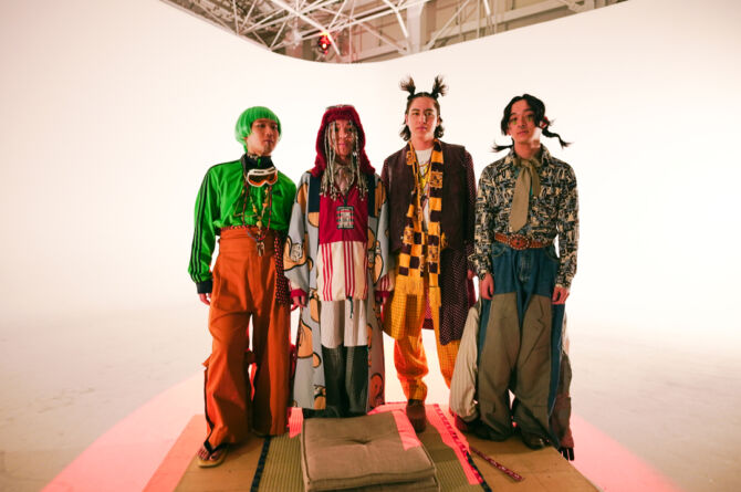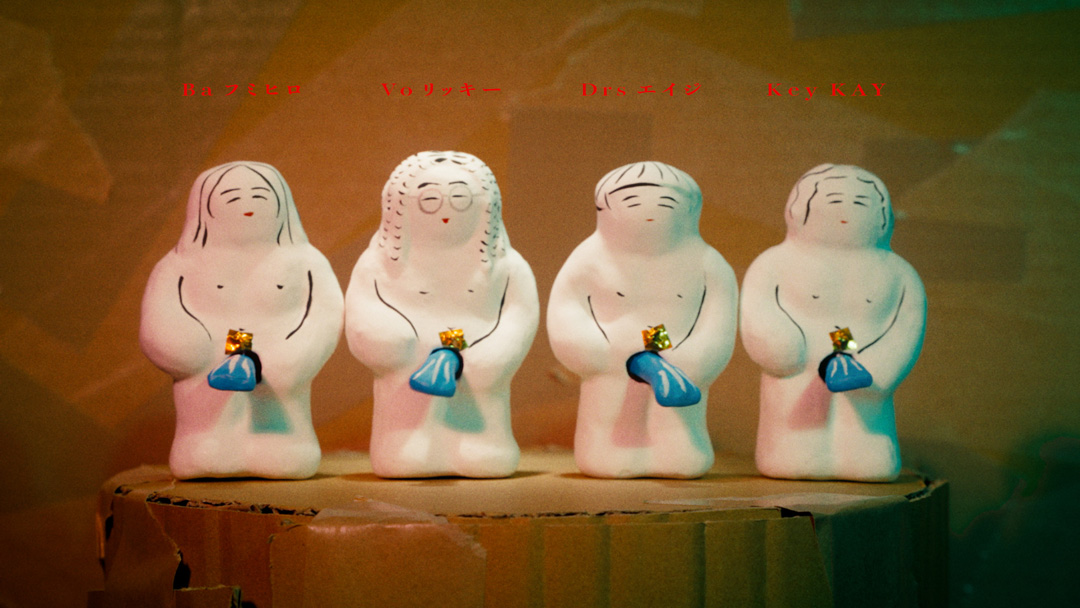 バンドのMV=楽器演奏シーンというセオリーにとらわれない映像作品を作りたくて、架空の楽器を自分たちで作らせてもらいました。過去、未来、どの時代にも当てはまらない楽器を演奏してるパラレルワールドの世界、“ネオ江戸感”をDIYで表現しました。今見ている世の中を違う視点で表現している「まれびと」ですが、あまのじゃくな僕らのことを僕ら以上に理解してくれて、ジャケットやアーティスト写真でも最高の作品にしてくれた中田みのりさんに具現化してもらい、想像の斜め上を行く映像になったと思います。