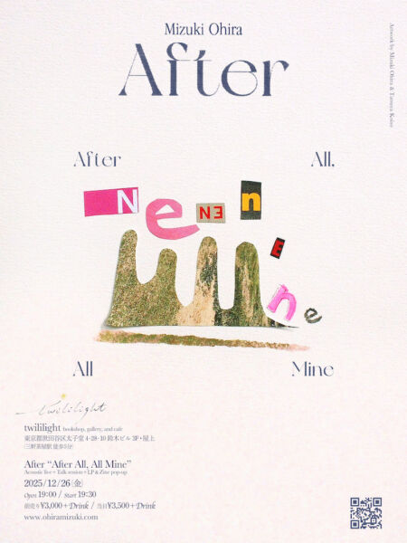 加えて、12月26日(金)に東京・三軒茶屋twililightにて、アルバム『After All, All Mine』の世界をより深く体験できる特別イベントが開催される。大比良瑞希による少人数空間でのアコースティックライブでは、デラックスエディションにも収録された楽曲の弾き語りバージョンを中心に披露。