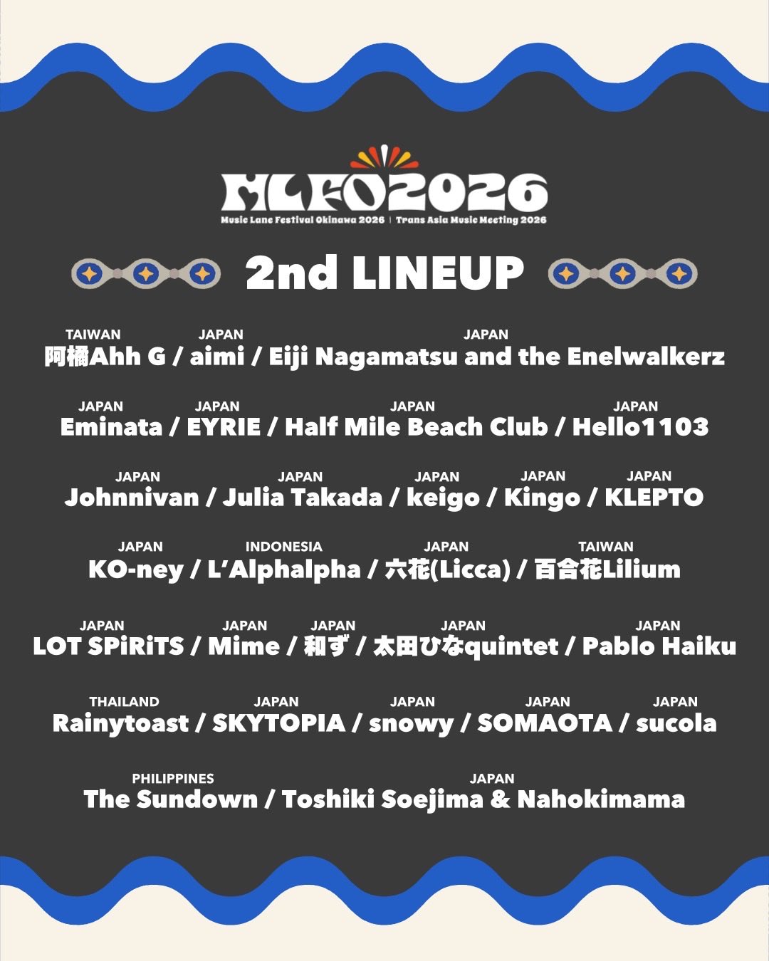 2026年1月30日(金)〜2月1日(日)にわたって沖縄県沖縄市(コザ)にて開催される『Music Lane Festival Okinawa 2026 / Trans Asia Music Meeting 2026』の第2弾ラインナップが発表された。