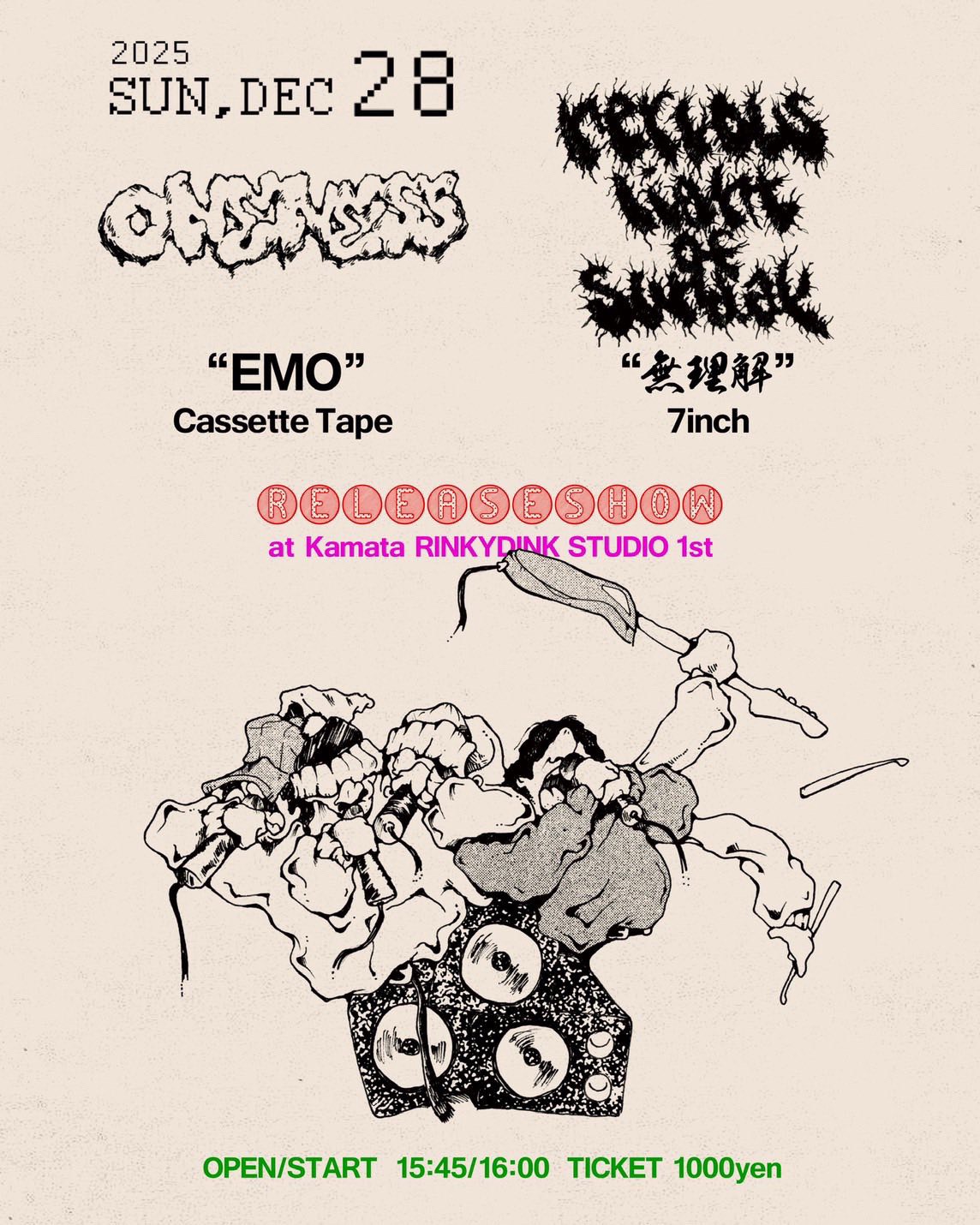 同イベントは同郷のハードコアバンド・nervous light of sundayの7インチレコード『無理解』とONENESSのカセットテープEP『EMO』のWリリースライブイベントとなっており、マーチャンダイズなども販売予定。