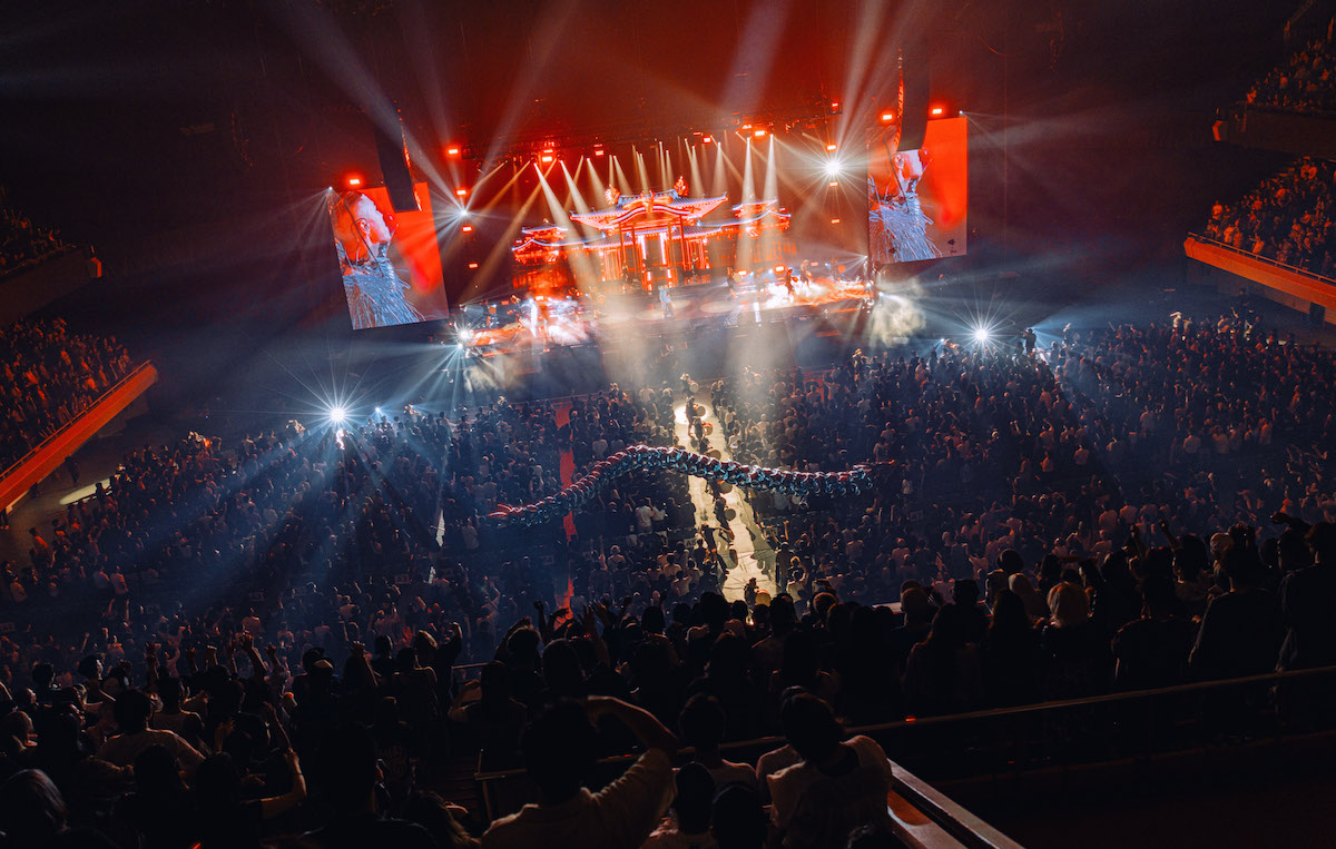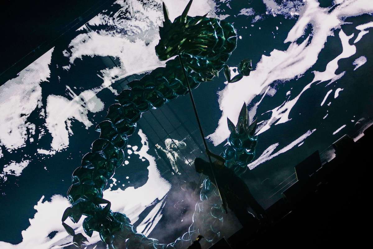 『369 at 日本武道館(ミロクアットニッポンブドウカン)』の名前の通り、全体を「3:創造」、「6:維持」、「9:破壊」の3部構成で行われた本ライブでは、3DCGで表現された巨大な自身の映像がLED画面に映し出されると、神秘的でありながらも近未来感溢れる演出映像で、登場前から観客を一気に独自の世界観に引き込んだ。その後も15mを超える巨大な龍や、30人以上の琉球エイサーの祭り太鼓演者が登場するなど、自身のルーツやアイデンティを表現した幻想的なライブ演出が際立った。