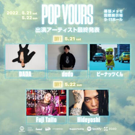 ヒップホップ・フェス『POP YOURS』、最終発表でDADA、dodo、ピーナッツくん、Fuji Taito、Hideyoshi