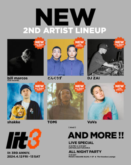 『lit』3周年パーティにどんぐりず、VaVa、bill marcos、DJ ZAIら追加