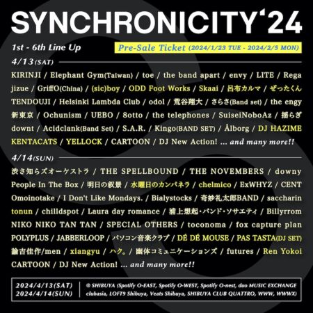 『SYNCHRONICITY’24』第6弾発表で(sic)boy、水カン、chelmico、ODD Foot Worksら