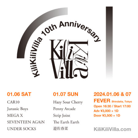 〈KiliKiliVilla〉10周年イベントが2days開催 CAR10、SEVENTEEN AGAiN、Strip Jointら出演
