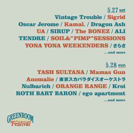 『GREENROOM FESTIVAL’23』第2弾発表でTash Sultana、Sigrid、Anomalieら国内外10組