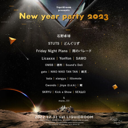 LIQUIDROOMの年越しパーティ第2弾発表でOMSB、徳利、gato、鋭児、Cwondo、SKRYUら15組