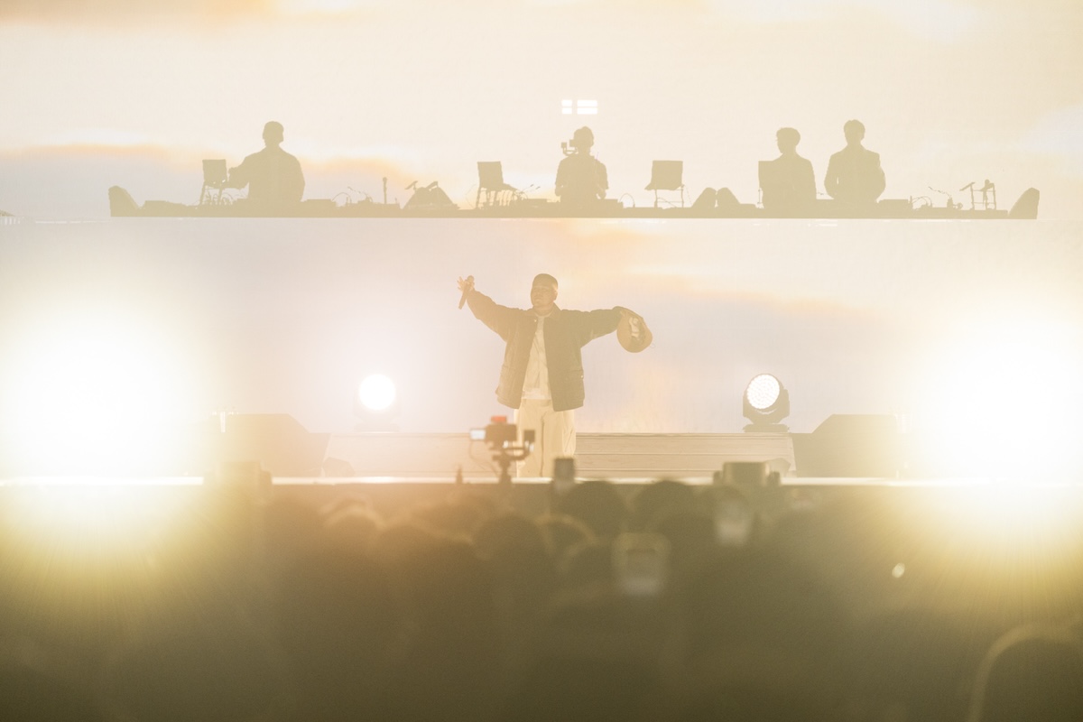 大トリ前を務めるKohjiyaには、大歓声がよく似合う。ファーストアルバムからの新曲もドロップしまくったほか、信念を語ってから披露された“Tell Me How It Goes”や、Kaneee、Yvng Patraとの2024年の『POP YOURS』オリジナル楽曲“Champions”などを伸びやかな声で歌って超弩級のシンガロングを巻き起こした。