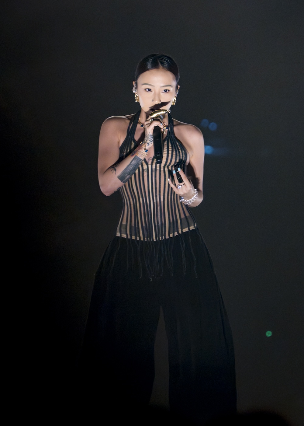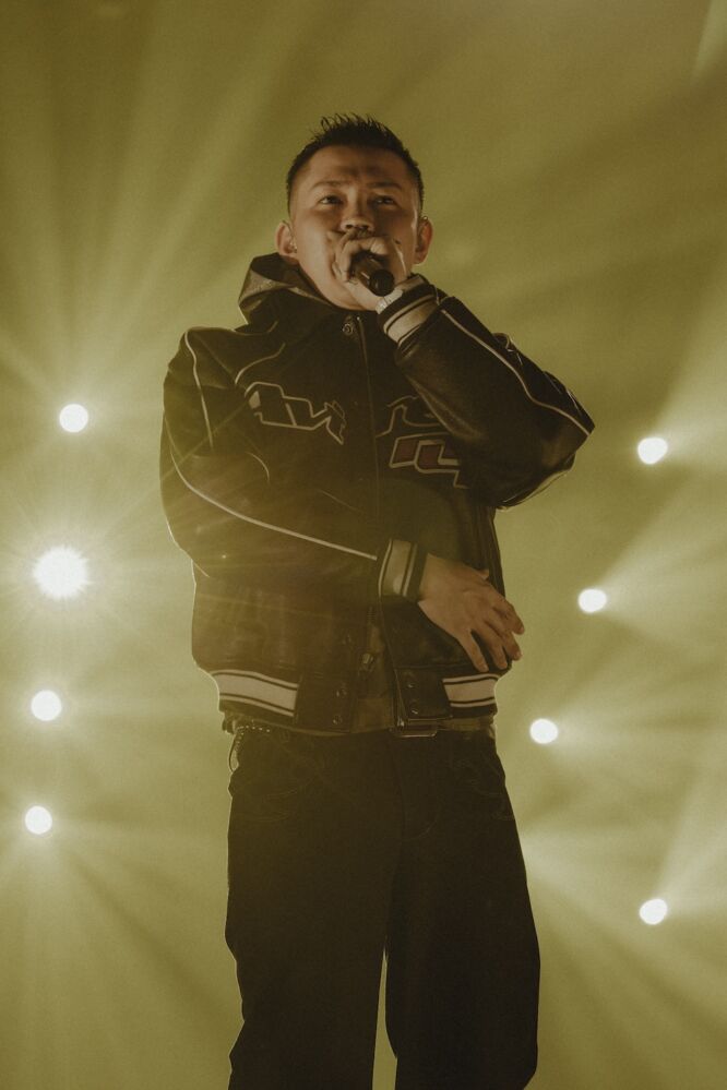 ANARCHYはリリースしたばかりのアルバム『Crest』からの楽曲だけでセットリストを組んだ。本作は全曲KMがプロデュース。“Doudemoii”でフィーチャーした3Li¥enとはこの会場で初めて実際に会ったという。その流れから「ラップには歳関係なくて。1年目でも3年目でもイケてるやつはいる。イケてるやつはラップやる前からイケてるから。ここにはラップやってなくてもイケてる人いっぱいいるでしょ? そういう人たちに届くラップをしたいと俺は思っている。このステージに立つのも簡単じゃなくて。このパーティに出てる人みんないろんな苦労をしてここに立ってるのよ。俺もそうやし。みんなオシャレしてステージに上がる。全部をこのステージに注ぎ込んで、力を全部使うんよ。それがラッパー。だからみんなリスペクトしてあげてください」と話した。元スケーターでもあるANARCHYはその感性を存分に発揮した最高にスタイリッシュなパフォーマンスもぶちかました。