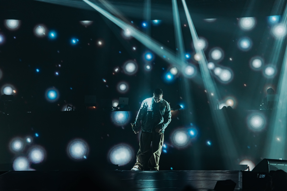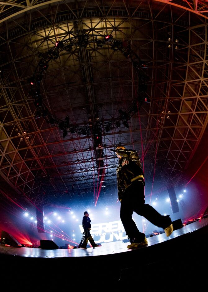次は、福岡アンダーグラウンドのトラップスター・Yvngboi Pがステージに。彼が幕張に持ち込んだのはストリートのリアルと爆発的なラップアンセムたちだ。Yvngboi P、Lunv Loyal、YTG、Deechが揃って初披露された昨年屈指のバンガー“Big Step”ではフロアを熱狂の渦に落とし込んだ。