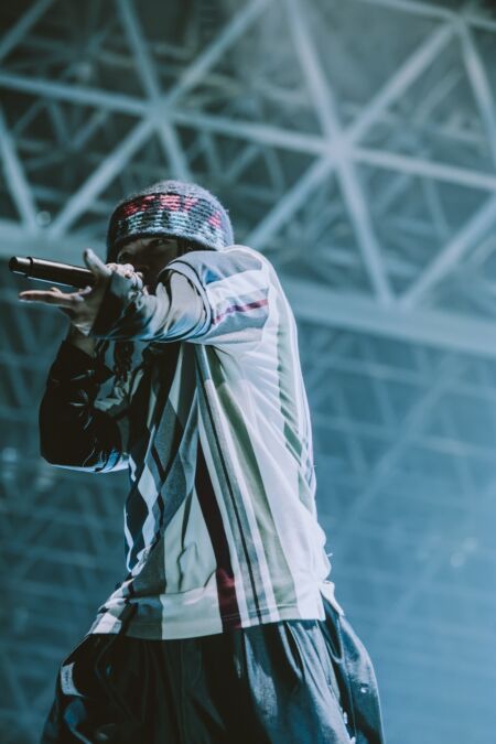 Kaneeeは、リズミカルかつスムースなフロウで大観衆を味方に。「このフェスのヘッドライナーになりたい」「地球一のラッパーになりたい」という宣言が嘘ではないとわかる非凡なラップだった。