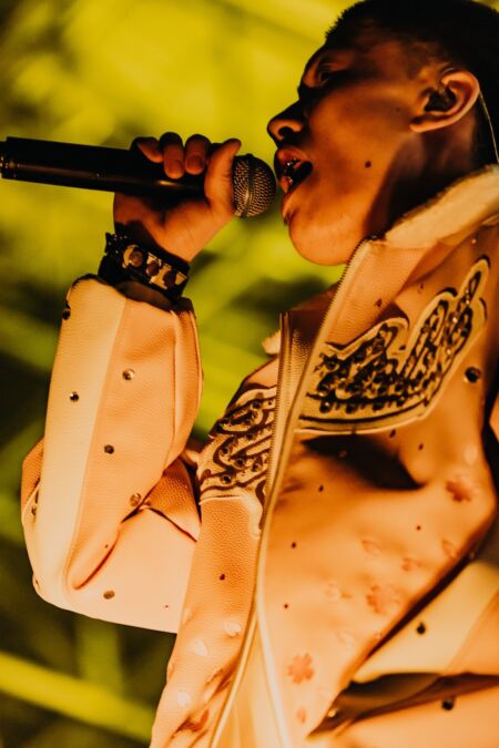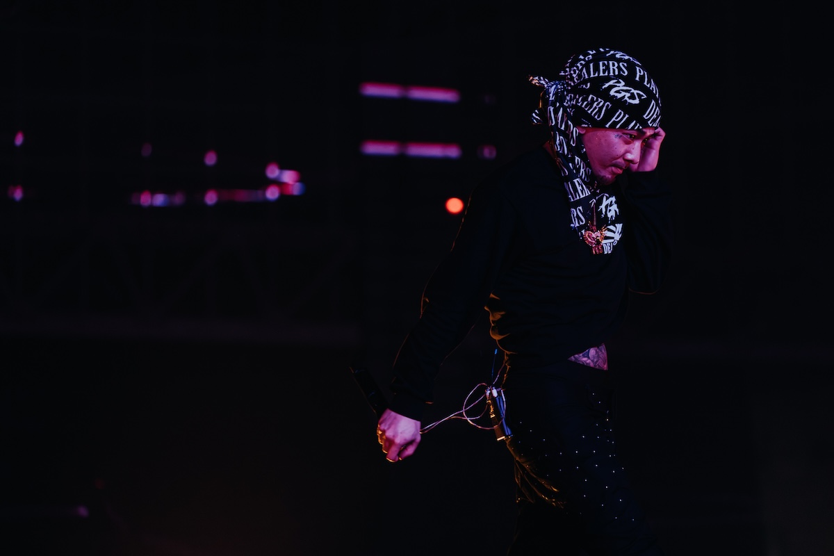G-k.i.dはBAD HOP時代から毎回このフェスに出演している数少ないラッパー。彼の魅力は間違いなく会場を一体にできるソウルフルな歌声だろう。“Black List Remix”では川崎の後輩・DeechとCandeeとダーティなトラップソウルを響かせた。G-k.i.dは「今年で5年目だっけ? 毎年このステージに立たせてもらっていて、本当にいい思い出が毎年あって。みんなも今日最高の1日でいい思い出を残して帰ってくれよ」と話して新曲“HOME”を熱唱した。