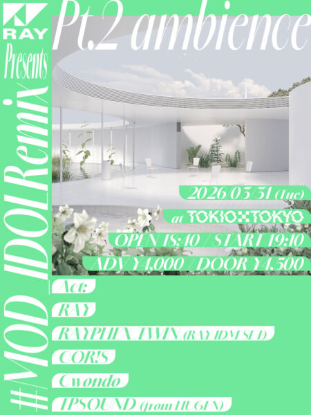 なお、連動企画として、3月31日(火)には東京・渋谷TOKIO TOKYOにて『RAY presents “#MOD_IDOLRemix” Pt.2 ambience』が開催予定。本作に参加したCOR!S、Cwondo、TPSOUND(from HUGEN)らが出演する。