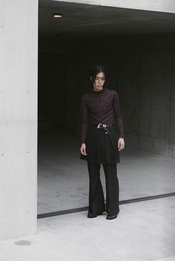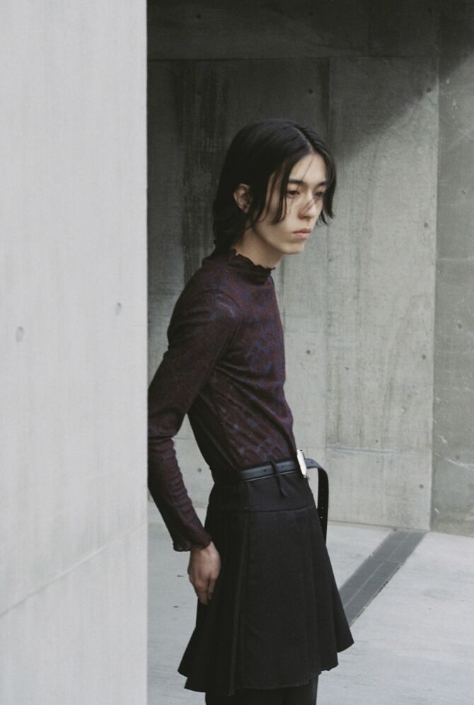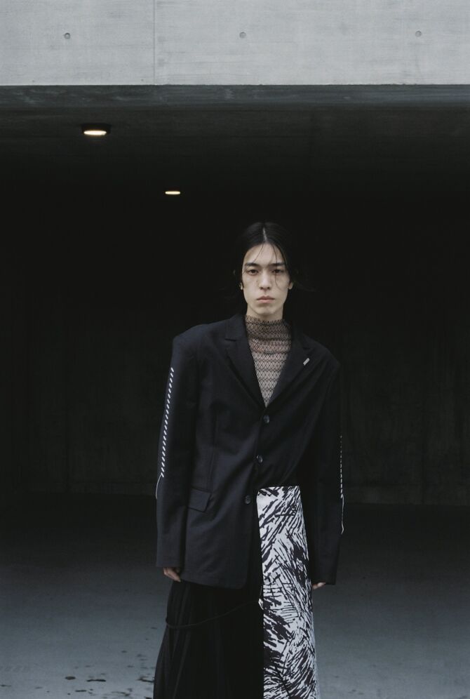 音楽の枠を超え、ファッションという新たな領域で魅せる松田歩の佇まい。記憶が織りなす「不整然な美しさ」が衣服へと昇華された、〈MIKAGE SHIN 26AW〉の深遠な世界観をぜひチェックしてみて欲しい。