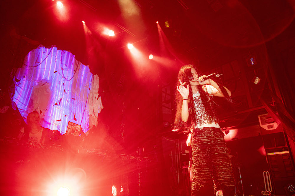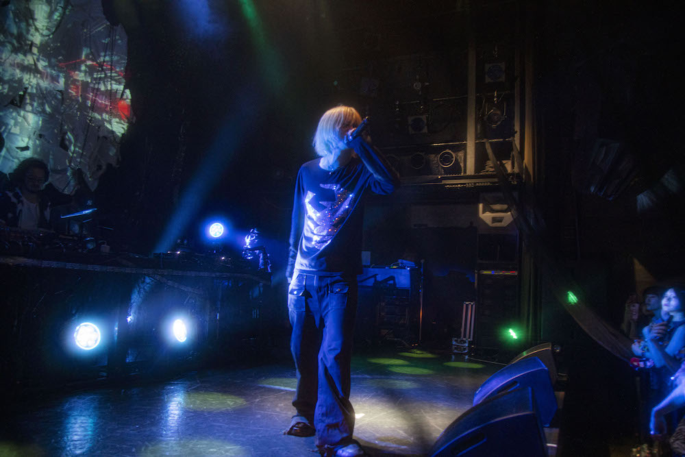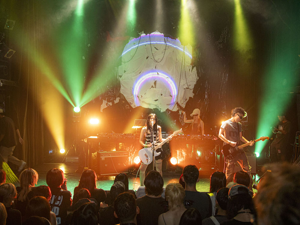 「こんにちは、yuzuhaです」。(sic)boyのバックDJとしても知られるsathiによる約40分ほどのDJが終わると、『PURE2000』などのイベントで知られるアーティストコミュニティー、XPEEDのメンバーでもあるyuzuhaが控え目な挨拶からライブをスタート。主にギターボーカルを担当する彼女と、ギター、DJの3人編成で、オルタナティブなポップサウンドを届けていく。その音はどこか懐かしさを感じさせるもので、Y2K的な感覚を抱かせもするが、yuzuhaの儚げなボーカルの揺らぎには、そういった雑な解釈に収まることなく、雑多に繰り返されるリバイバルの混沌の中で息をする、現代のリアルな若者の声が宿っていた。