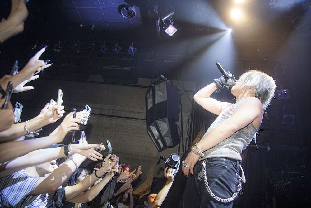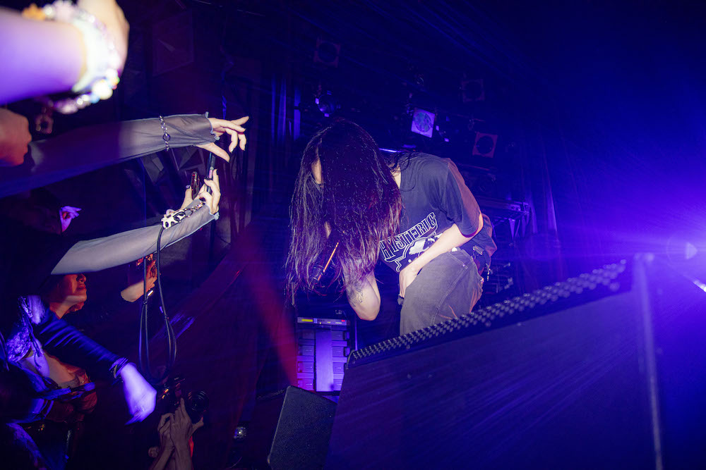 Hikoichiがエモーショナルな未発表曲“Ayy”でライブを締めると、次の山田ギャル神宮は代表曲のひとつ“MyStory”で頭からトップギアへ。2023年に『ラップスタア誕生』に出演したことでも注目を集めた彼はこの日のラインナップでも名の知れた方に入ると思うが、最後の曲“jiboujiki”の前に「black!」「nails!」のコールアンドレスポンスを挟み、「俺のこの黒のネイルもみんなの、みんなの熱で剥がしてくれよ!」と叫んでみせる熱いライブを披露。(sic)boyの指名に全力で応えてみせていた。