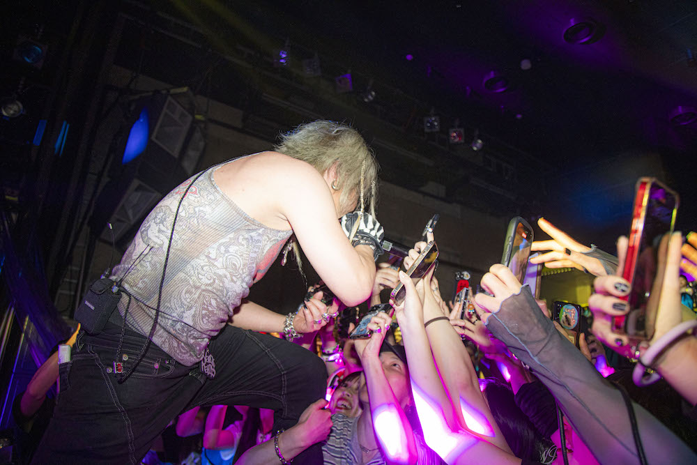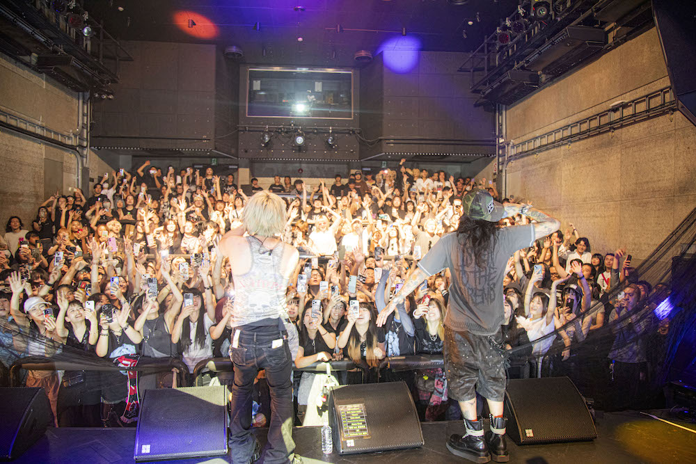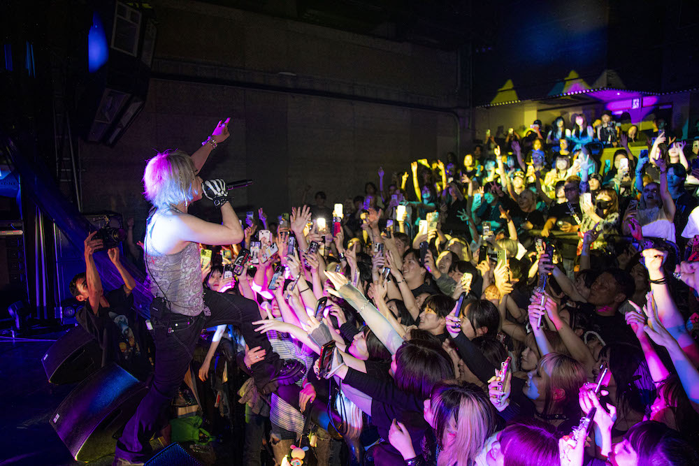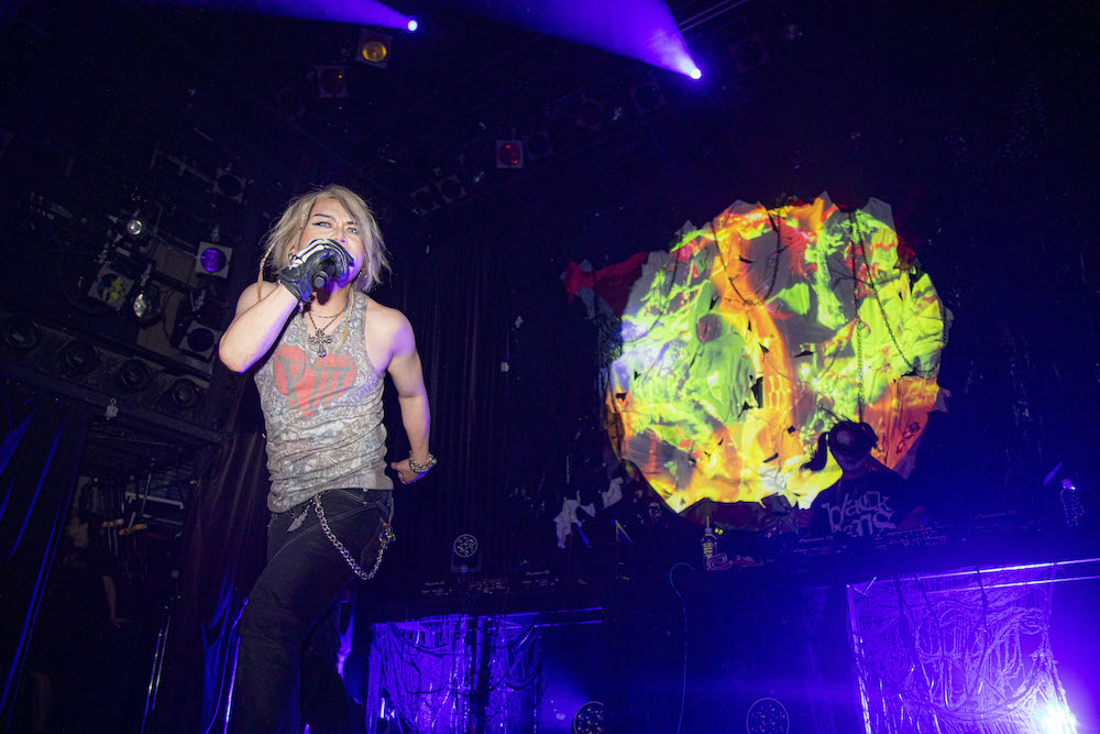 さらに最新シングル“Hello”からの必殺の“Heaven’s Drive”ではvividboooyも登場! なお、“Heaven’s Drive”では珍しく歌詞を飛ばす瞬間もあったが、終演後に本人に聞くと、なんとこの曲でそんなことが起きるのは初めてだそうで、「気持ちが乗り過ぎちゃったんです」と笑顔で語ってくれた。要するにそれだけ気合いがこもっていたということだ。その後も「もっとぶっ壊れようぜ!」と煽り、“Akuma Emoji”、釈迦坊主を呼び込んでの“落雷”と畳み掛け、フロアを完全に支配。MCでは、今後さらにこのイベントを広げていきたいという想いを告げ、「『blacknails』をよろしくお願いします」と繰り返し、ラストはMERIとのイベントテーマソング“blacknails”へ。「俺だけじゃなく、俺らが『blacknails』でした!」と約4時間にわたって繰り広げられた狂宴を、出演者、スタッフを代表して叫んで締めくくった。