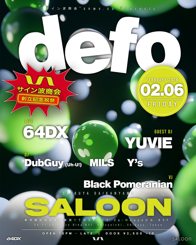 アーティストマネジメントおよび音楽制作事業を展開する「合同会社サイン波商会(以下、サイン波商会)」が、会社設立を記念したパーティー『defo』を2月6日(金)に東京・代官山SALOONにて開催する。