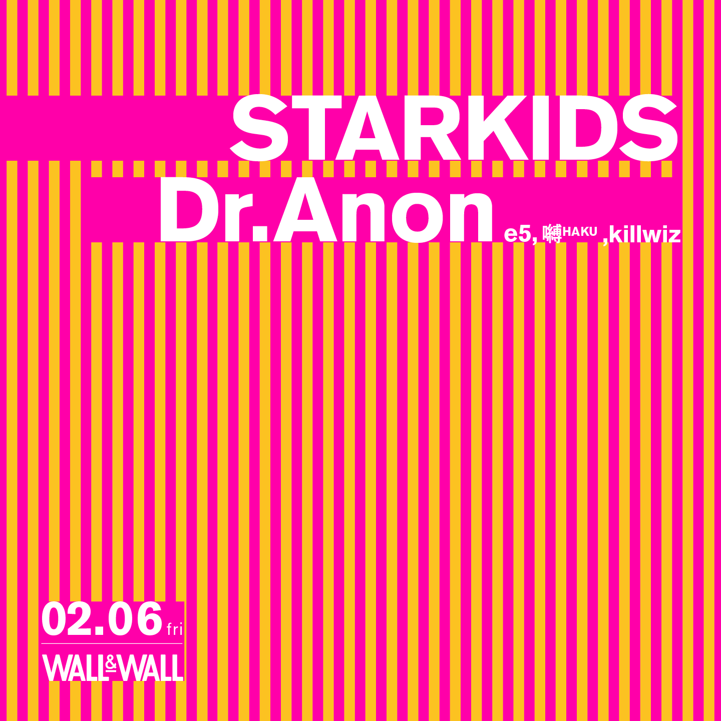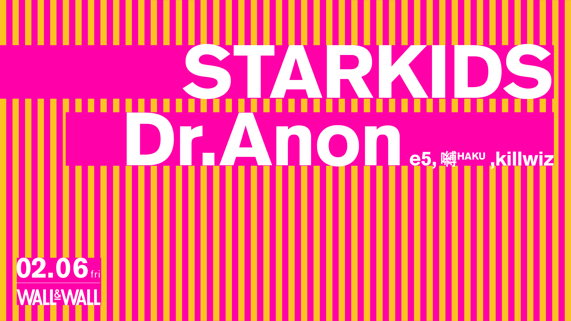 killwiz(fka. ponika)、e5、嚩ᴴᴬᴷᵁによるユニット・Dr.Anonが限定復活。STARKIDSとのツーマンライブが2月6日(金)に東京・表参道WALL & WALLにて開催される。