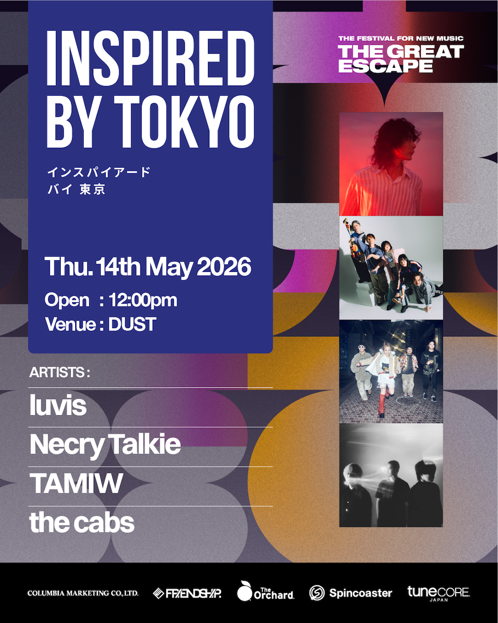 イギリス・ブライトンで開催されるヨーロッパ最大級の新進音楽フェスティバル『The Great Escape 2026』にて、日本の音楽企業5社によるオフィシャルショーケースライブ『Inspired by Tokyo』の開催が決定した。