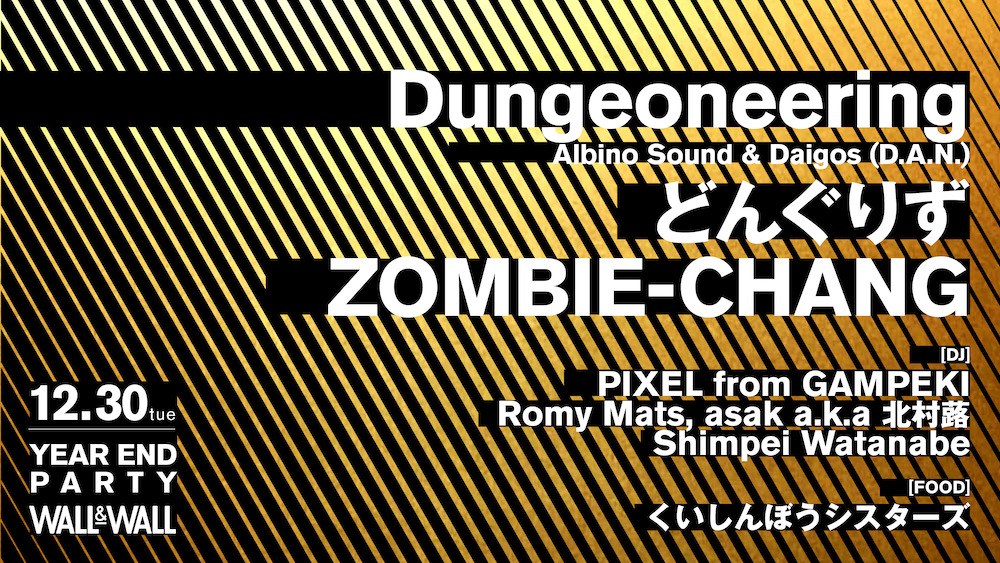 2026年で10周年を迎えるWALL&WALLが、満を持して送る本公演。ライブアクトにはAlbino SoundとDaigos(D.A.N.)からなるエレクトロニックデュオ・Dungeoneeringをはじめ、どんぐりず、ZOMBIE-CHANGの3組が出演。