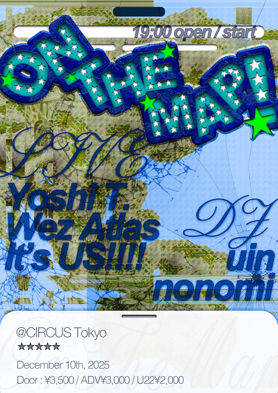 Wez Atlasがキュレーションするイベント『ON THE MAP!』が12月10日(水)に東京・渋谷CIRCUS Tokyoにて開催される。